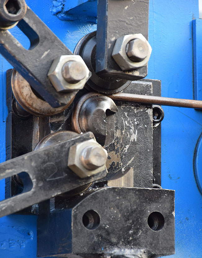 本機(jī)廣泛適用于鋼絲、鐵線、不銹鋼絲等各種金屬線材(圓、扁、方、六角型等)的卷圓、半圓或任意角度(同心角)的圓弧,配以專用的模具及可調(diào)壓輪還可制作方形、橢圓形工件;非圓形截面的線材、板材只需更換調(diào)線輪,送線輪,壓線輪及切刀即可加工。是水泥電桿、鋼筋凳、礦用風(fēng)筒、環(huán)保除塵骨架、風(fēng)扇網(wǎng)罩、汽車方向盤、童車車輪、燈罩、工藝品、花盆架、箱包扣件、日用五金廚具(如爐架、酒/杯架)等行業(yè)提高產(chǎn)品質(zhì)量、降低生產(chǎn)成本、提升生產(chǎn)能力的首選設(shè)備。