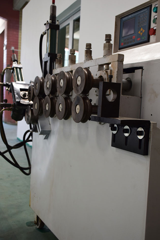 本機(jī)廣泛適用于鋼絲、鐵線、不銹鋼絲等各種金屬線材(圓、扁、方、六角型等)的卷圓、半圓或任意角度(同心角)的圓弧,配以專用的模具及可調(diào)壓輪還可制作方形、橢圓形工件;非圓形截面的線材、板材只需更換調(diào)線輪,送線輪,壓線輪及切刀即可加工。是水泥電桿、鋼筋凳、礦用風(fēng)筒、環(huán)保除塵骨架、風(fēng)扇網(wǎng)罩、汽車方向盤、童車車輪、燈罩、工藝品、花盆架、箱包扣件、日用五金廚具(如爐架、酒/杯架)等行業(yè)提高產(chǎn)品質(zhì)量、降低生產(chǎn)成本、提升生產(chǎn)能力的首選設(shè)備。