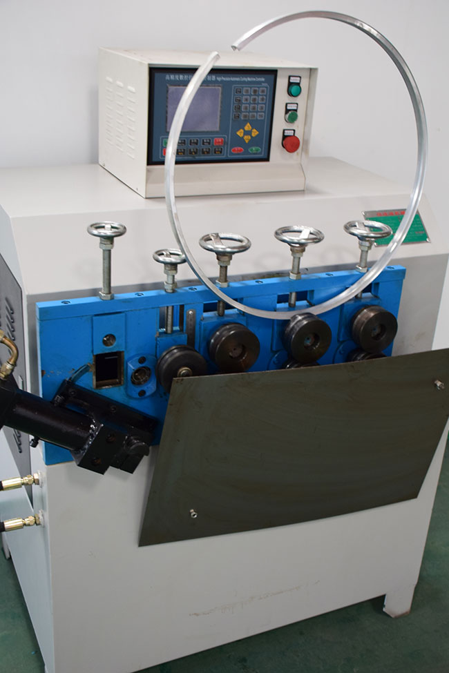 本機(jī)廣泛適用于鋼絲、鐵線、不銹鋼絲等各種金屬線材(圓、扁、方、六角型等)的卷圓、半圓或任意角度(同心角)的圓弧,配以專用的模具及可調(diào)壓輪還可制作方形、橢圓形工件;非圓形截面的線材、板材只需更換調(diào)線輪,送線輪,壓線輪及切刀即可加工。是水泥電桿、鋼筋凳、礦用風(fēng)筒、環(huán)保除塵骨架、風(fēng)扇網(wǎng)罩、汽車方向盤、童車車輪、燈罩、工藝品、花盆架、箱包扣件、日用五金廚具(如爐架、酒/杯架)等行業(yè)提高產(chǎn)品質(zhì)量、降低生產(chǎn)成本、提升生產(chǎn)能力的首選設(shè)備。