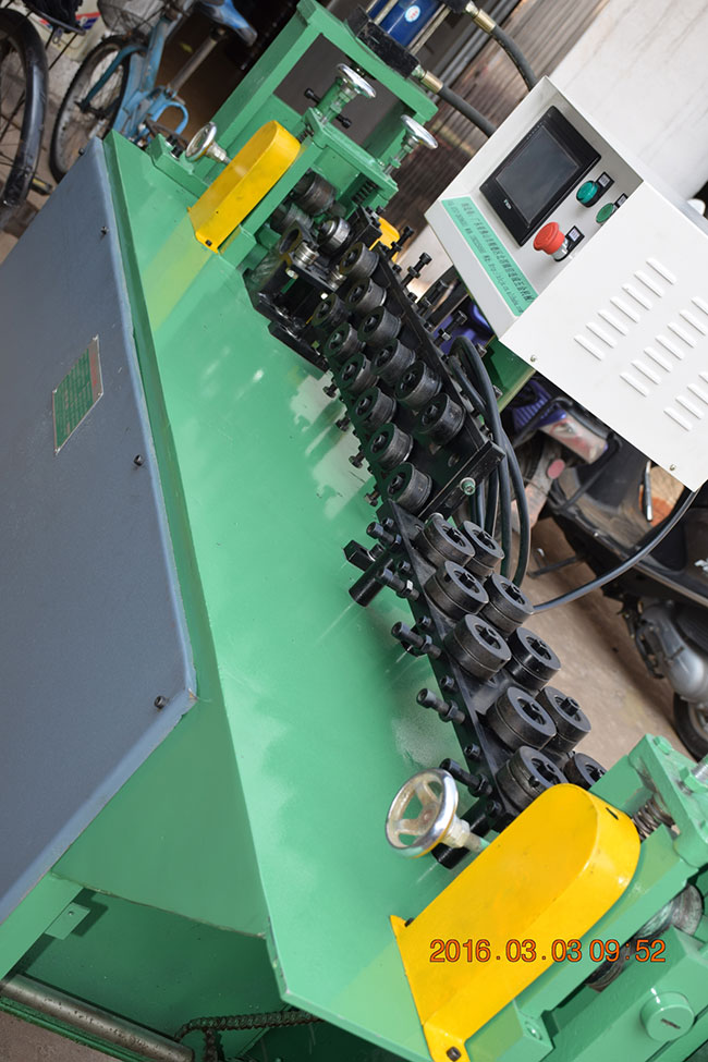 3.所有調直輪均有動力牽引輸出,雙馬達雙驅動系統(tǒng),完美解決傳統(tǒng)扁鐵調直機送料與調直分離,導致牽引送料輪牽引力度過大,打滑損傷材料表面的缺點,尤其對不銹鋼高要求表面產品效果顯著。